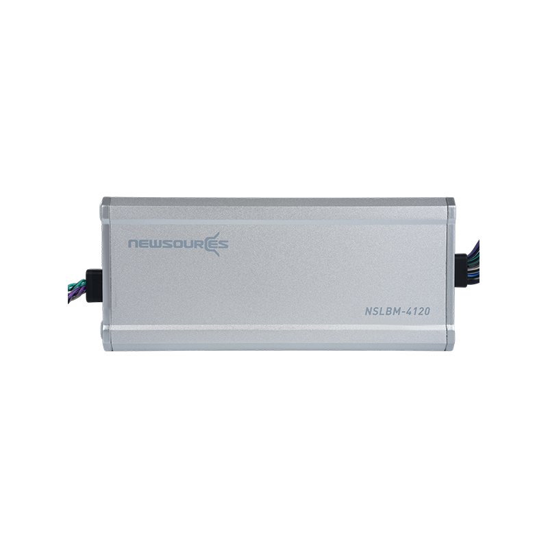 NSLBM-4120 4-channel full-range class D amplifier is IPX5-rated for waterproofing and features a rugged mechanical structure (ME structure) that withstands diverse environments, ensuring safe and stable operation in damp and dusty conditions. It is particularly suitable for outdoor audio and automotive applications. The NSLBM-4120 delivers 80W RMS power per channel into a 4-ohm load, increasing to 120W RMS into a 2-ohm load, with distortion below 1%. This ensures clear, detailed, and dynamic sound, meeting the high-fidelity and high-power requirements of multi-channel systems. A DIP switch allows for flexible crossover mode selection. The built-in low-pass filter (LPF) supports 120Hz and 80Hz settings, while a high-pass filter (HPF) is adjustable from 50Hz to 250Hz for 2-channel operation, allowing precise adjustment to suit speaker and system requirements, enhancing overall audio performance.