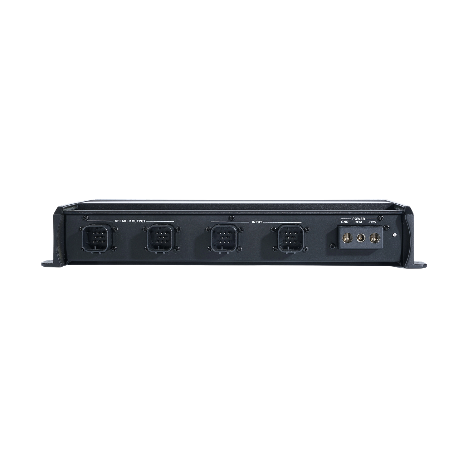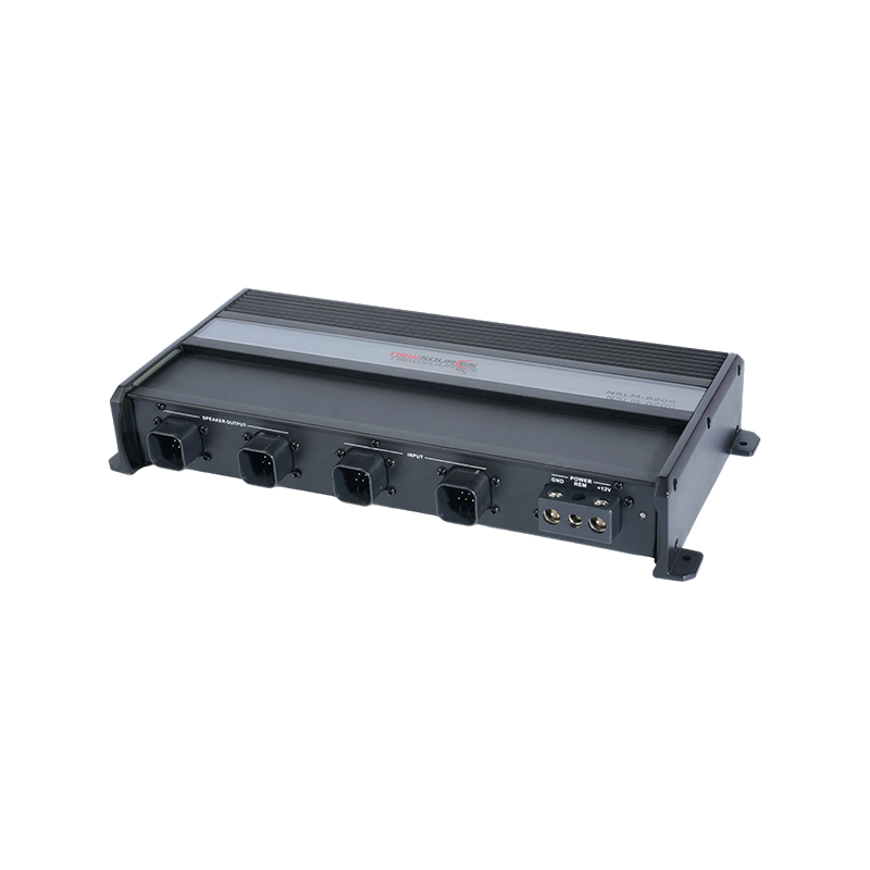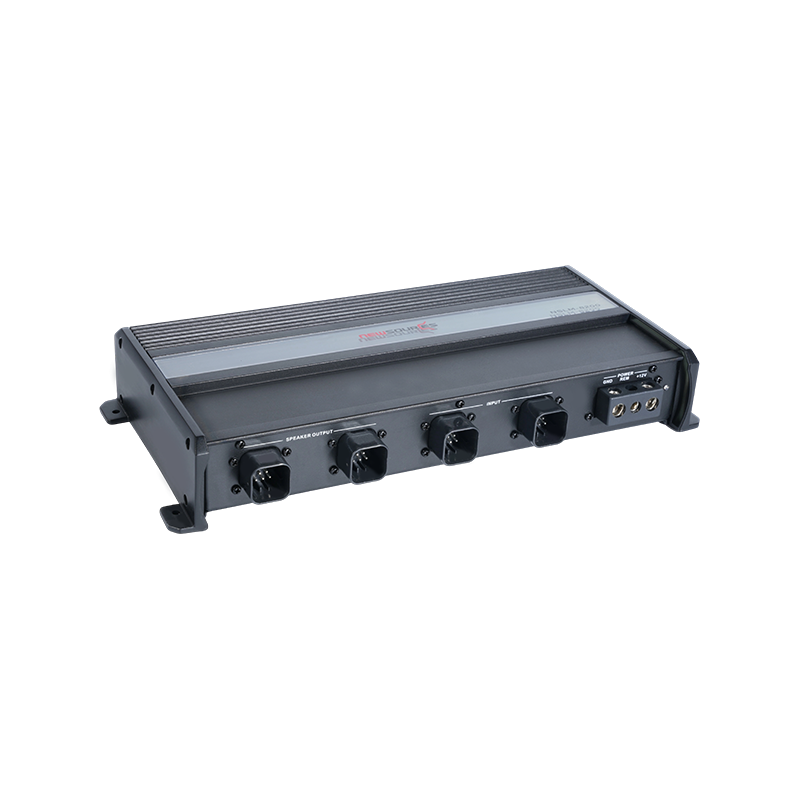 NSLM-1.1000 Mono Channel class D amplifier is designed for users who demand superior low-frequency performance in outdoor or in-car audio systems. Featuring powerful power output, a waterproof construction, and multiple protection features, it provides stable and powerful driving power for subwoofers, maintaining excellent performance even in challenging environments. It features a signal-sensing function that automatically activates upon detecting an audio signal, enhancing operational convenience. It also features remote volume control, allowing users to adjust volume to suit their environment or preferences. Utilizing TE waterproof connectors, the system achieves an IPX4 waterproof rating, effectively preventing splashes of water, rain, and other liquids from entering the system, meeting the reliability requirements of outdoor and harsh operating environments. Its compact design, measuring 245mm (width) × 160mm (depth) × 46mm (height), facilitates concealed installation or installation in confined spaces.