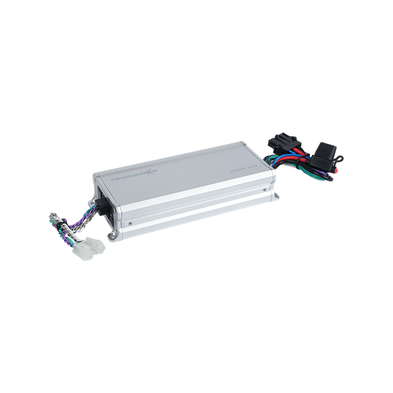 NSLBM-1300 Mono-block class D amplifier is designed for outdoor and automotive applications, offering excellent waterproof performance (IPX5 rating), ensuring stable and reliable operation in rainy and humid environments. It easily fits into confined spaces and features a rugged mechanical structure (ME structure) to withstand challenging environments. A control panel equipped with DIP switches allows users to flexibly configure various operating parameters to meet diverse needs. Extensive audio adjustment features include a switchable low-pass filter (LPF) between 120Hz and 80Hz, and a switchable high-pass filter (HPF) between 50Hz and 250Hz, allowing users to flexibly adjust the amplifier based on their speaker configuration and listening preferences. Gain controls on both front and rear channels allow for precise volume adjustment. Mono models also feature a 16Hz to 47Hz subsonic filter, effectively filtering out unwanted low frequencies to protect speakers from damage while enhancing bass purity. A built-in signal sensing function automatically detects the input signal and activates the amplifier, streamlining operation. The 12V remote output interface facilitates linkage with other devices and expands the functions of the audio system.